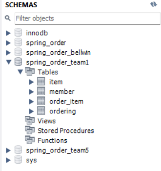 spring_roder_team1이름으로 mariaDB에 스키마 만들어주고