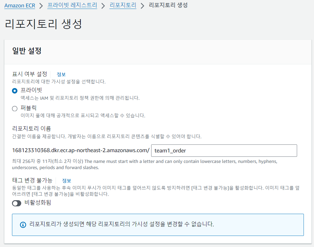 --> RDS 비밀번호 문제 때문에 바로 ECR에 이미지 업로드