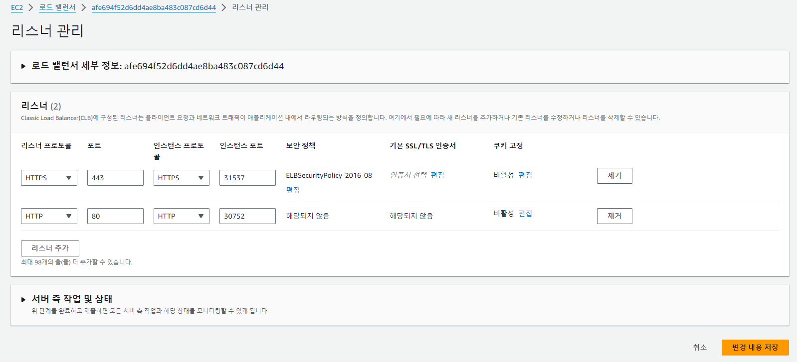 로드 밸런서에도 HTTPS 인증서 적용을 해줘야 함 !!