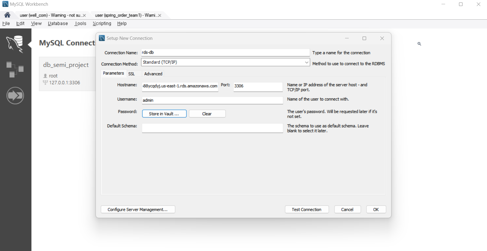 RDS 정보들을 DB_HOST, USERNAME, PASSWORD에 각각 넣어준다.