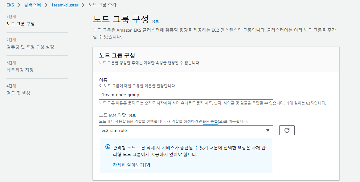 위에서 했던 것처럼 EKS 만들고, 노드 그룹 구성 해주고 ~