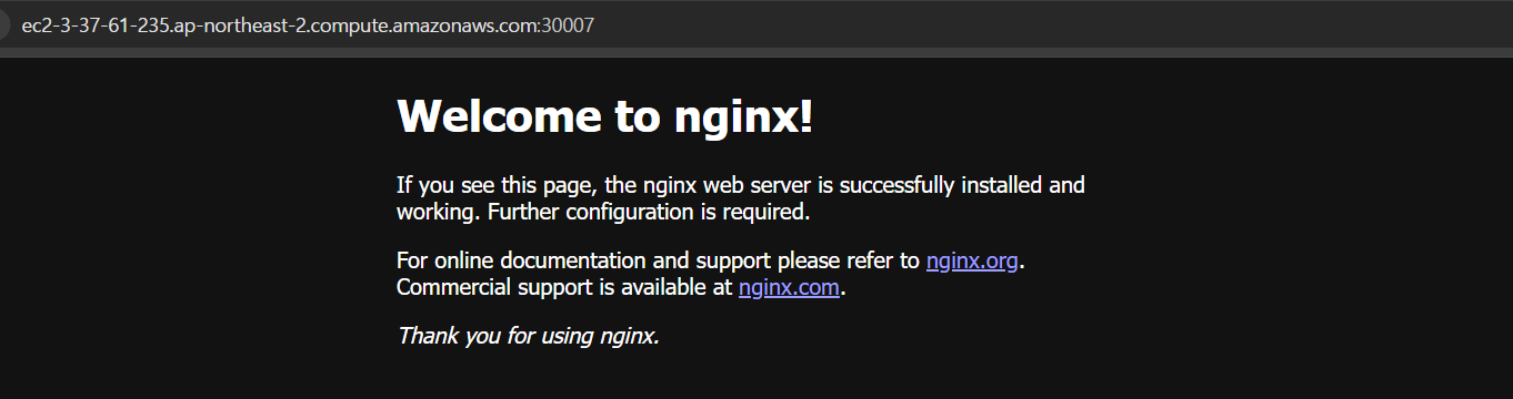 접근할 수 있는 외부 포트 30007을 설정해주었다.