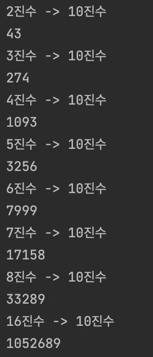 int 타입은 해당 타입의 숫자를 10진수로 처리하기 때문에 10진수를 제외한 나머지 진수는 String으로 받아야 한다.