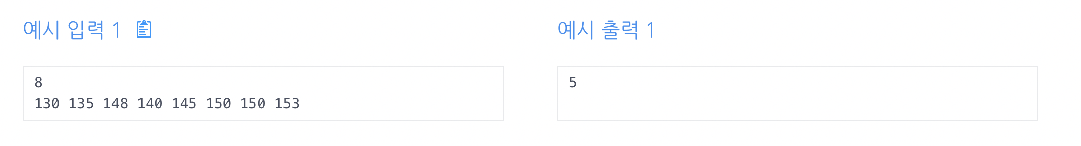 첫 줄에 정수 N(5<=N<=100,000)이 입력된다. 그 다음줄에 N명의 학생의 키가 앞에서부터 순서대로 주어진다.
