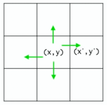 옮겨온 셀 (x',y') 입장에서는 (x,y)가 자신에게 인접한 셀이 되어 findPath(x,y)를 호출해
