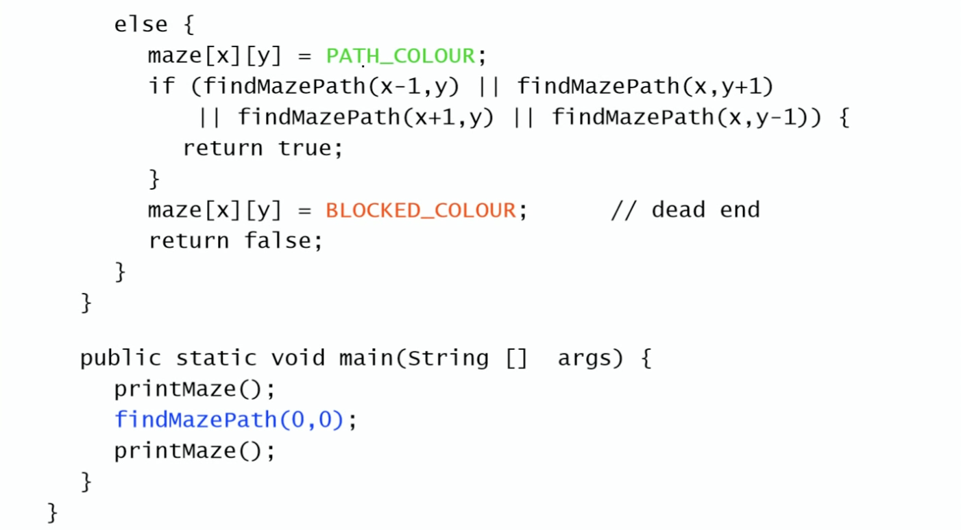 if(findMazePath(x,y+1) || findMazePath(x+1, y) || findMazePath(x,y-1) || findMazePath(x-1,y))