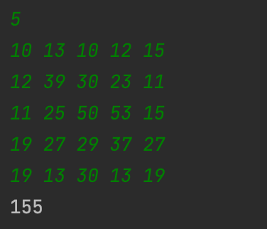 두 번째 줄부터 N줄에 걸쳐 각 줄에 N개의 자연수가 주어진다. 각 자연수는 100을 넘지 않는다.