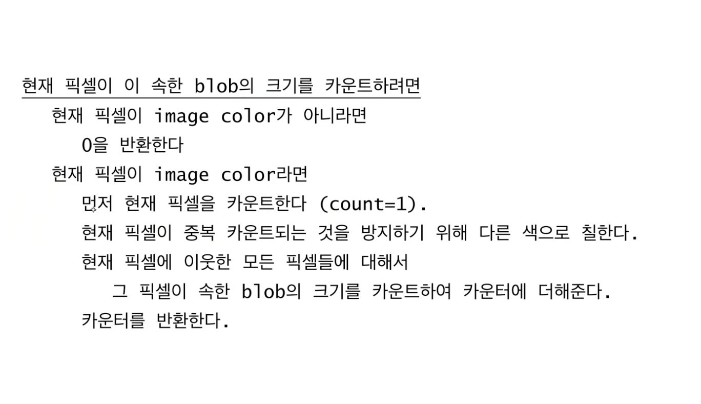 1) 2)에 해당하지 않는다면, 그 픽셀을 포함한 blob을 찾는다.