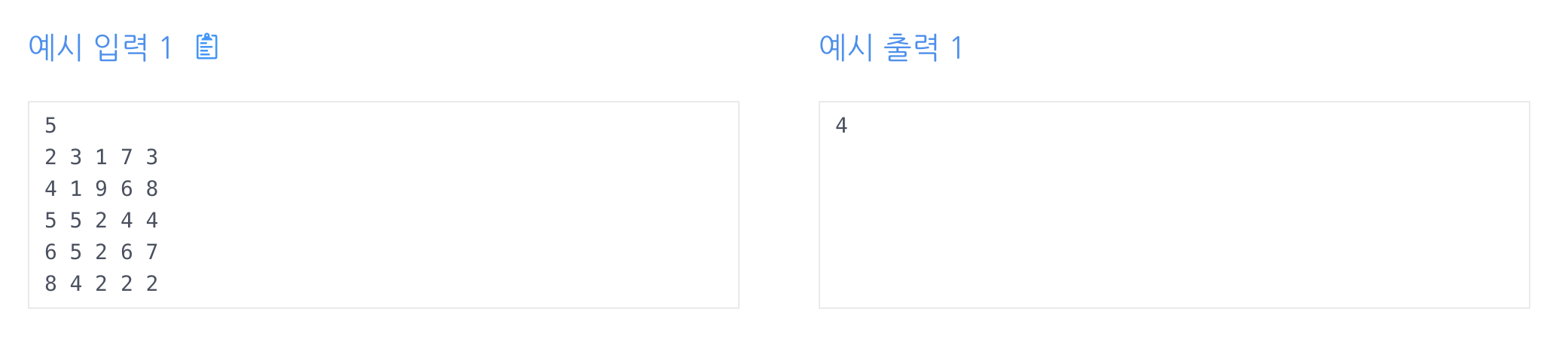 이 예에서 4번 학생이 전체 학생 중에서 같은 반이었던 학생 수가 제일 많으므로 임시 반장이 된다.