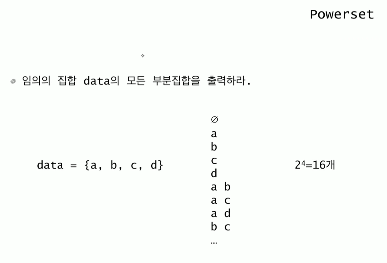 powerset 문제는 모든 리프 노드까지 탐색을 마쳐야 정답을 구할 수 있다