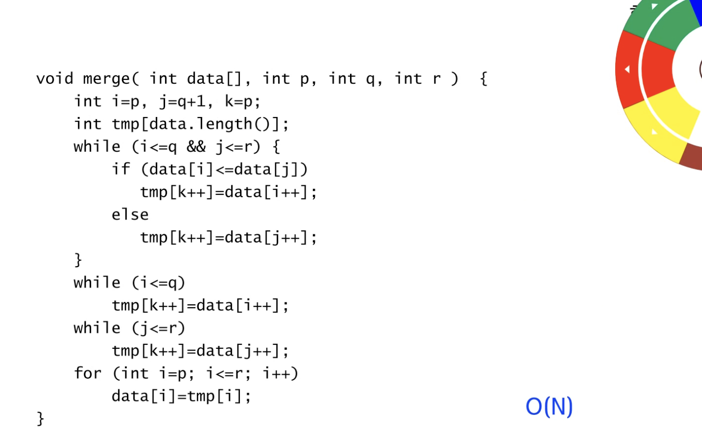 public static void merge(int[] a, int p, int q, int r) {