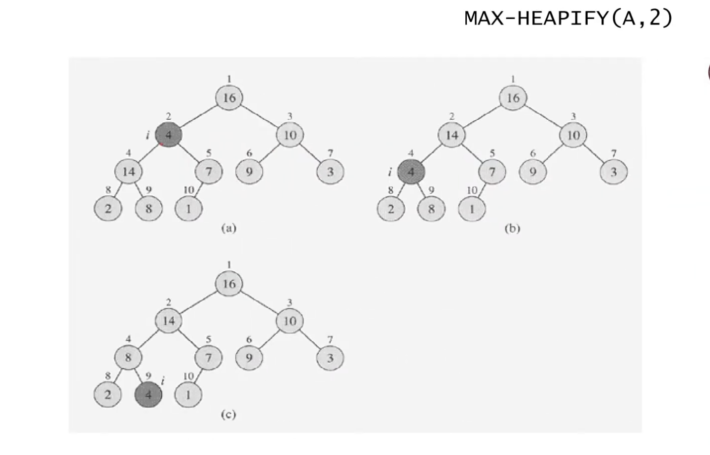 MAX-HEAPIFY의 sudo code - iterative version