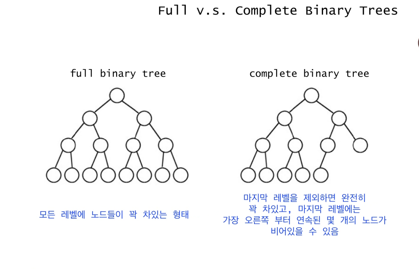 포화 이진트리(full binary tree)와 완전 이진트리(complete binary tree)의 차이점은