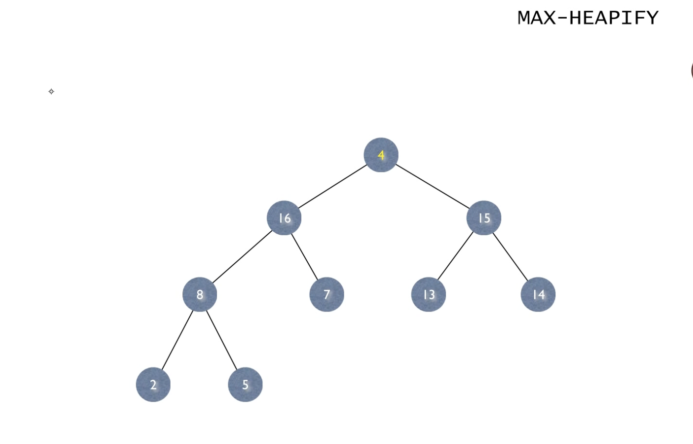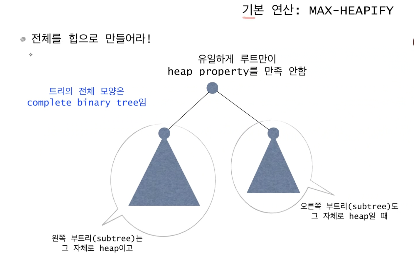 전체 트리를 Heap으로 만드는 역할을 하는 함수를 MAX-HEAPIFY라고 부르자.