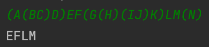 입력된 문자열에서 소괄호 ( ) 사이에 존재하는 모든 문자를 제거하고 남은 문자만 출력하는 프로그램을 작성하세요.