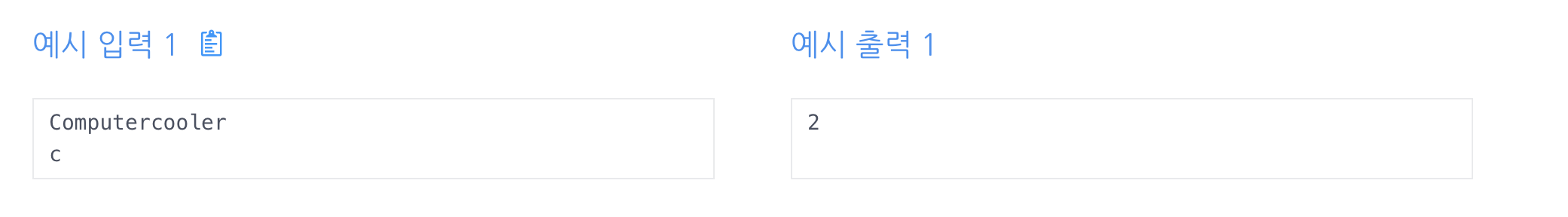 첫 줄에 문자열이 주어지고, 두 번째 줄에 문자가 주어진다.