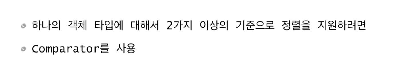 하지만 어떤 때에는 "문자열"순으로 정렬하고 어떤 때에는 "정수"순으로 정렬하고 싶다면? Comparator를 사용하면 된다.