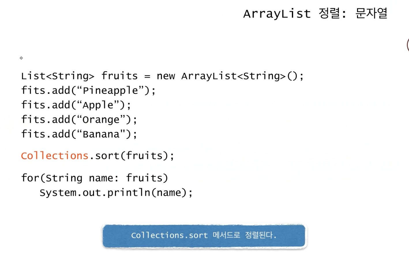 List, ArrayList같은 데이터들은 Collections 클래스를 이용해 정렬한다.