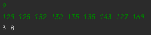 철수와 짝꿍이 자리를 바꾼 반 학생들의 일렬로 서있는 키 정보가 주어질 때 철수가 받은 번호와 철수 짝꿍이 받은 번호를