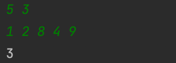 첫 줄에 자연수 N(3<=N<=200,000)과 C(2<=C<=N)이 공백을 사이에 두고 주어집니다.