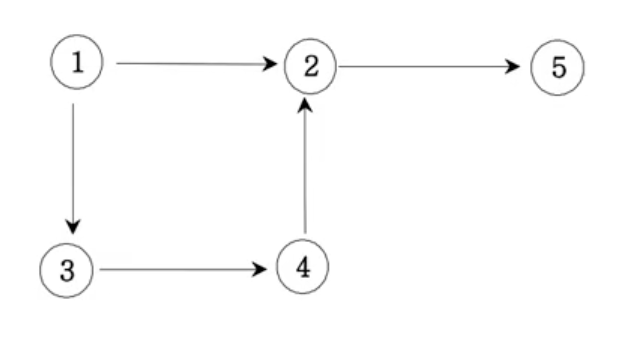 V(G2) = {1, 2, 3, 4, 5}, E(G2) = {<1, 2>, <1, 3>, <4, 2>, <3, 4>, <2, 5>)}