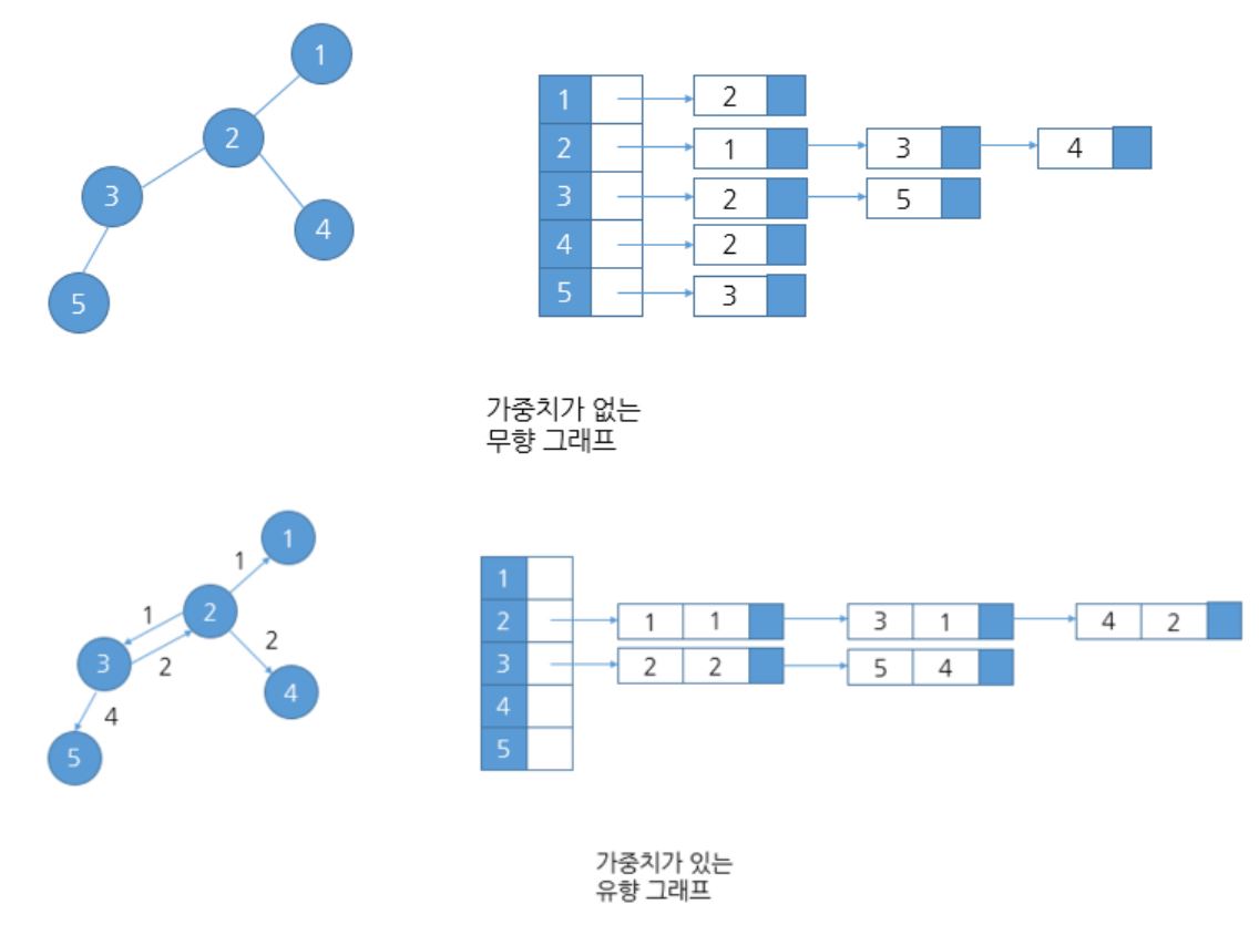 : 그림과 같이 가중치 표현 없이 인접한 노드 정보가 저장된다.